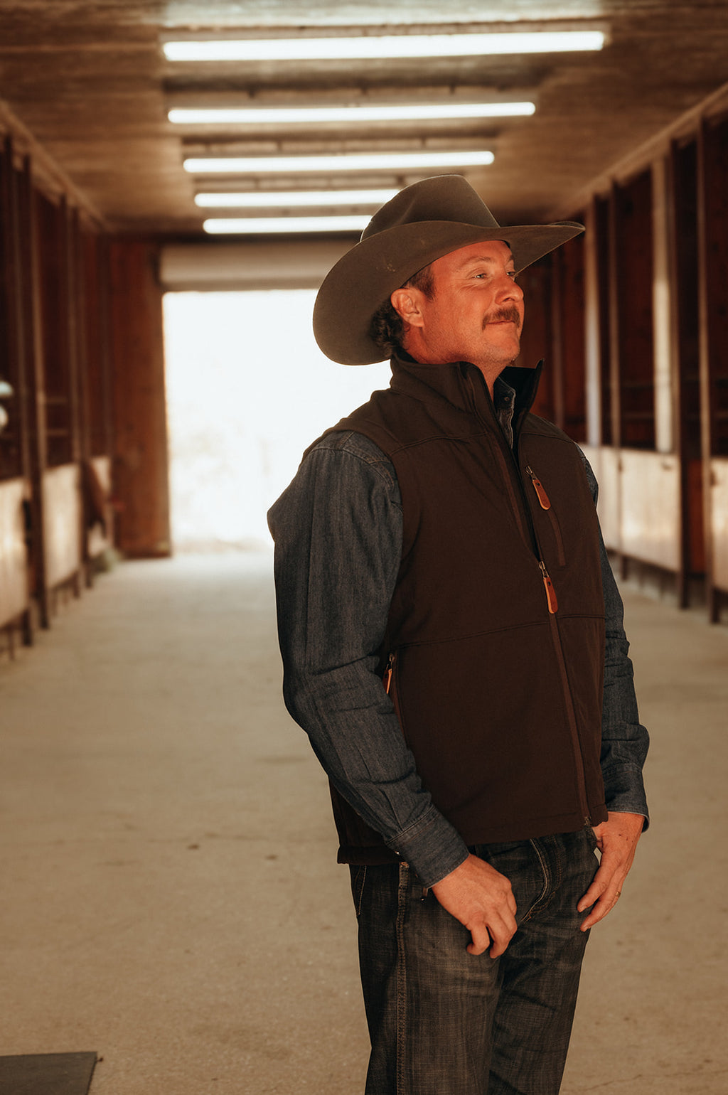 Introducing the Lazy J Ranch Men's Poly Fill Vest - Chocolate, Insulated, Lightweight & Stylish.